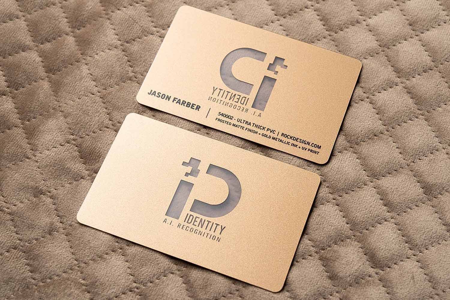 (3)適用于高級(jí)管理層、CEO、創(chuàng)始人等場(chǎng)景,PVC磨砂雙面合版名片+白墨+燙金工藝。價(jià)格: ¥58元/盒 起(一盒為100張)。